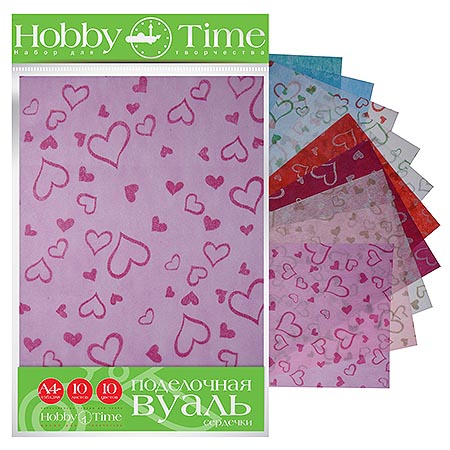 Набор поделочная вуаль " Hobby Time " А4 10л, 10цв, сердечки, пакет, европодвес