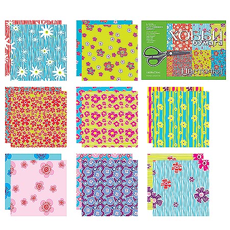 Бумага для декорирования и творчества " Hobby Time " А4 8л Цветочки, на скобе, 45г/м2