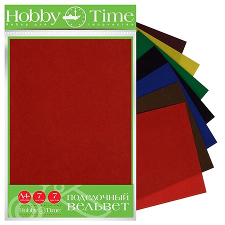 Набор поделочный вельвет " Hobby Time " А4 7л, 7цв, базовые цвета, пакет, европодвес
