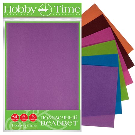Набор поделочный вельвет " Hobby Time " А4 6л, 6цв, яркие цвета, пакет, европодвес