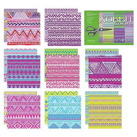 Бумага для декорирования и творчества " Hobby Time " А4 8л Узоры мира, на скобе, 45г/м2