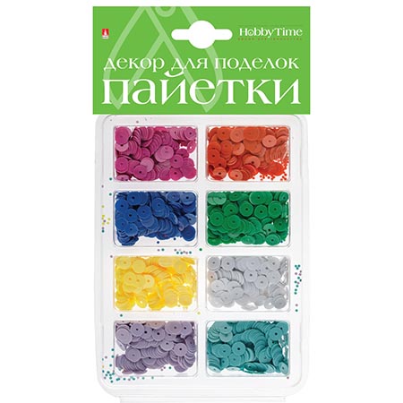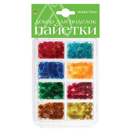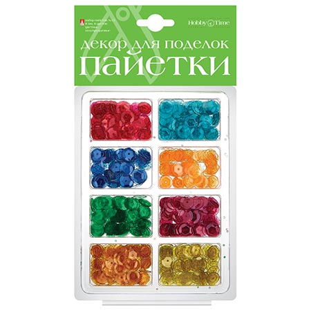 Декоративные пайетки " Hobby Time " №27 Цветные полупрозрачные, 6мм, 8 цветов, пакет, европодвес