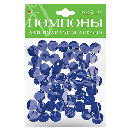 Помпоны " Hobby Time " пушистые, синие, 15мм, 50шт