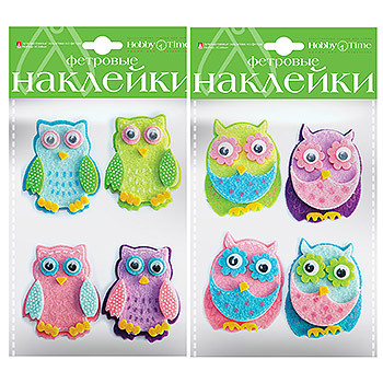 Декоративные наклейки " Hobby Time " Совы, из фетра, 3 вида, набор №1