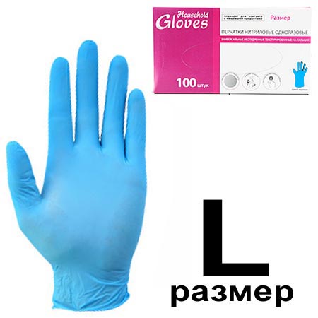 Перчатки нитриловые неопудренные нестирильные голубые Household Gloves размер L 50 пар (100 штук), текстурированные на пальцах
