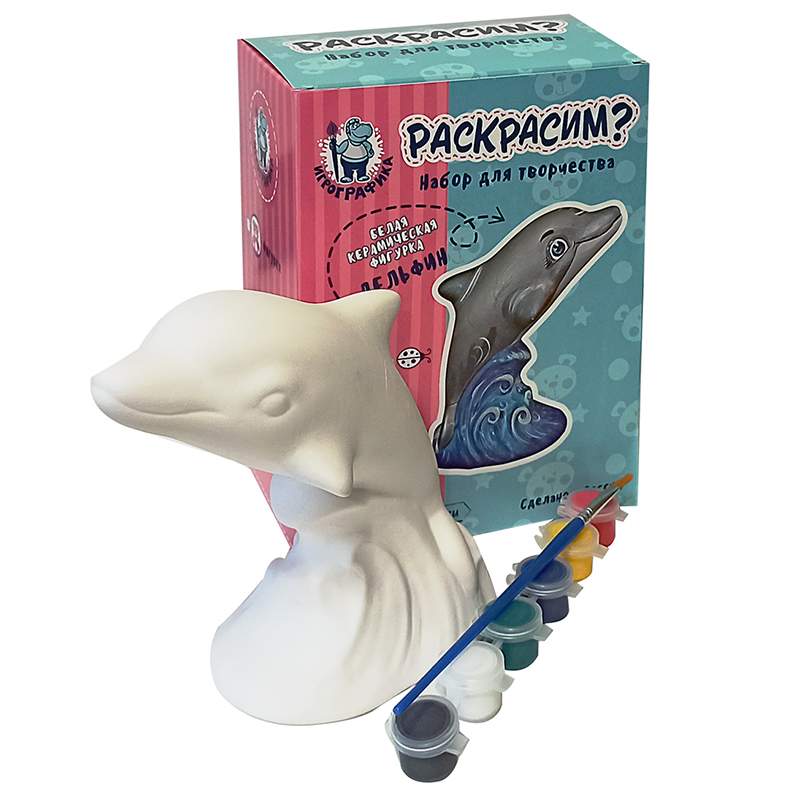 Набор для росписи фигурки из керамики Игрографика с акриловыми красками "Дельфинчик"