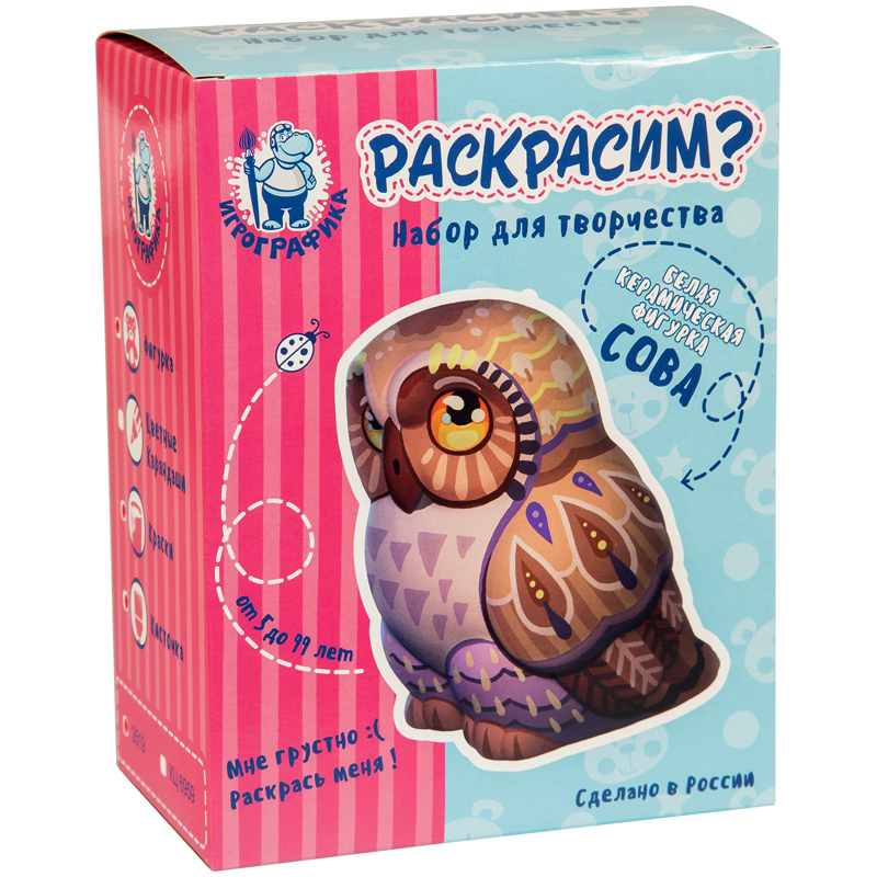Набор для росписи фигурки из керамики Игрографика с акриловыми красками "Сова"