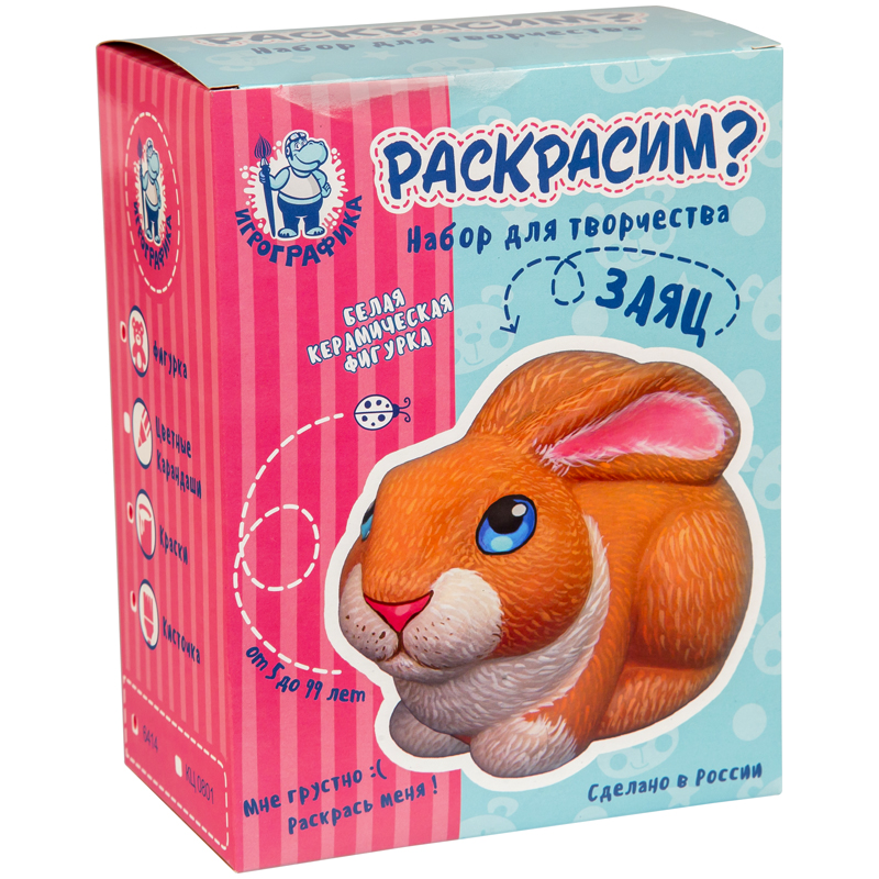 Набор для росписи фигурки из керамики Игрографика с акриловыми красками "Заяц"