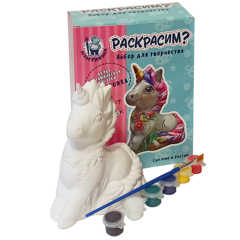 Набор для росписи фигурки из керамики Игрографика с акриловыми красками "Единорожка"