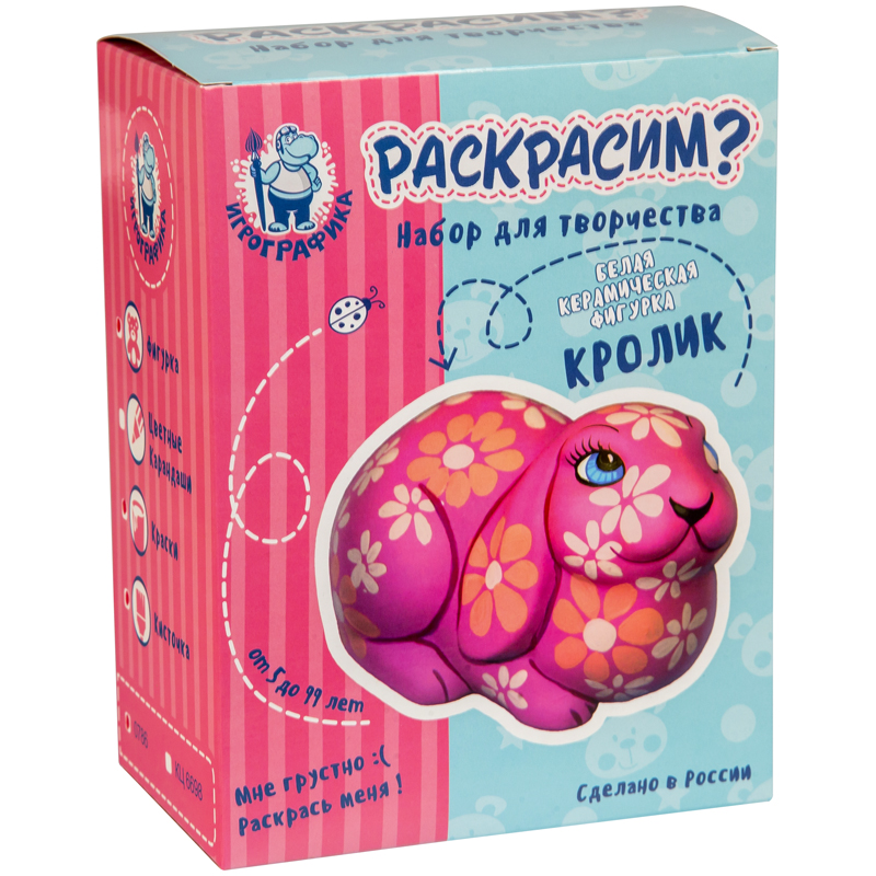 Набор для росписи фигурки из керамики Игрографика с акриловыми красками "Кролик"