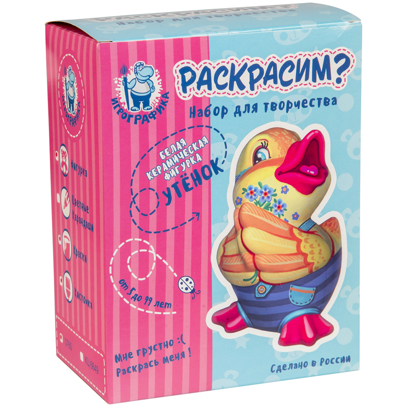Набор для росписи фигурки из керамики Игрографика с акриловыми красками "Утенок"