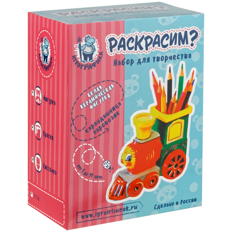 Набор для росписи фигурки из керамики Игрографика с акриловыми красками "Карандашница Паровоз"