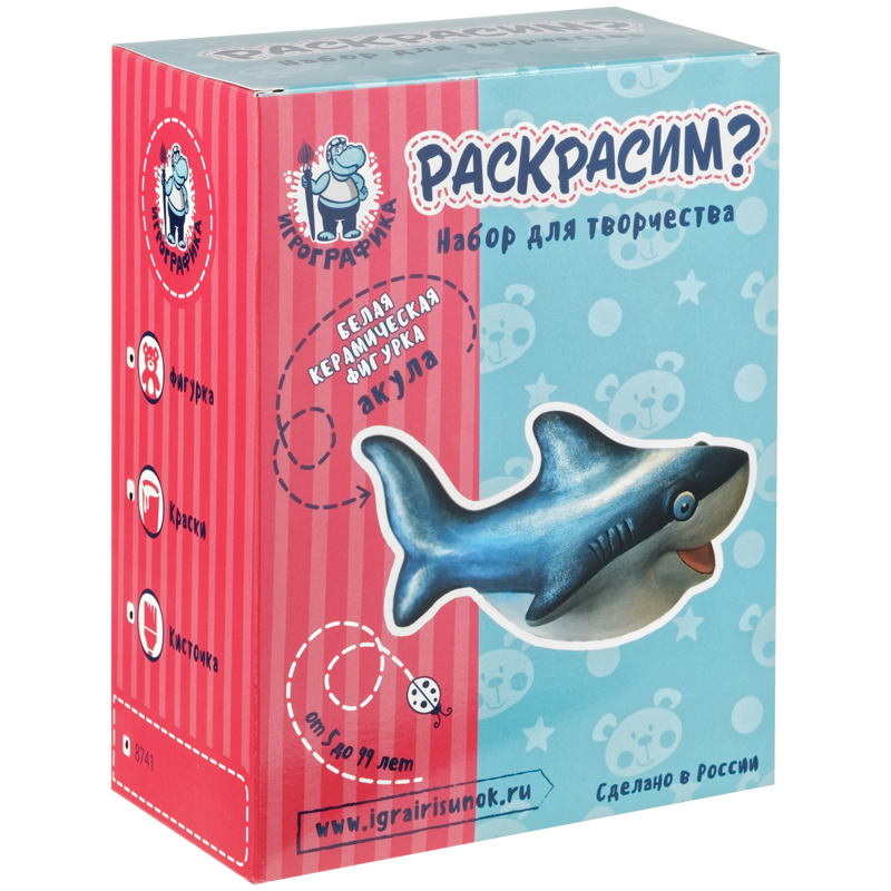 Набор для росписи фигурки из керамики Игрографика с акриловыми красками "Акула"