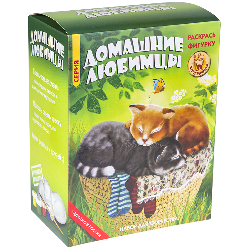 Набор для росписи фигурки из керамики Игрографика с акриловыми красками "Кот два раза"