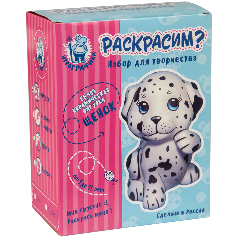 Набор для росписи фигурки из керамики Игрографика с акриловыми красками "Щенок"
