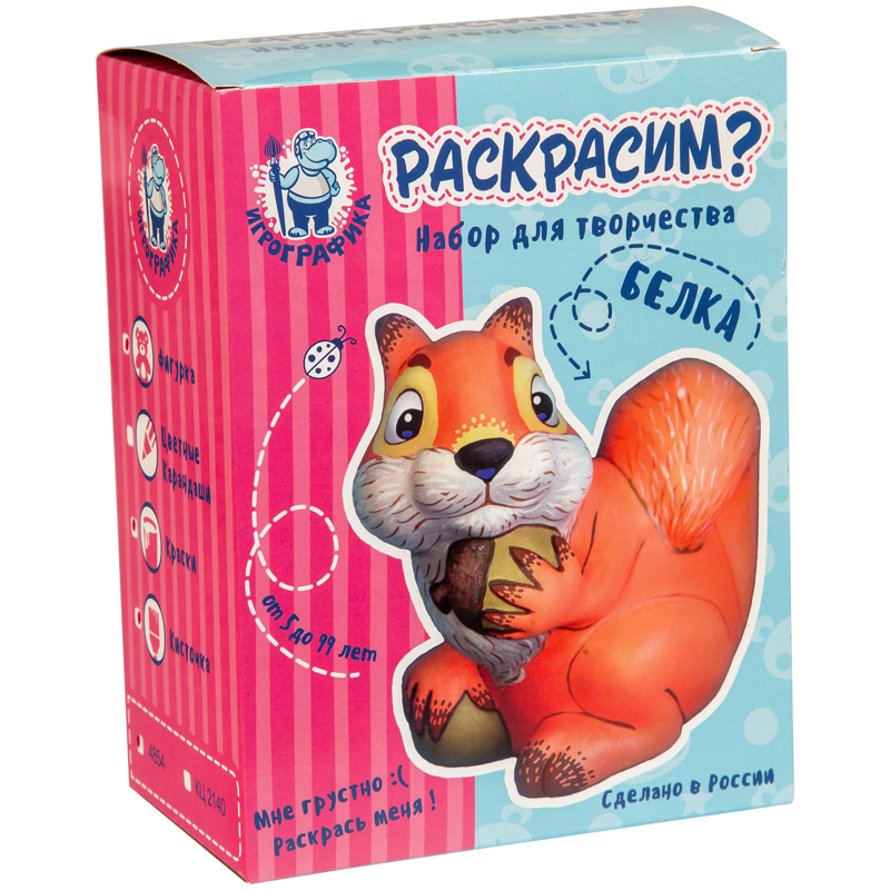 Набор для росписи фигурки из керамики Игрографика с акриловыми красками "Белка"
