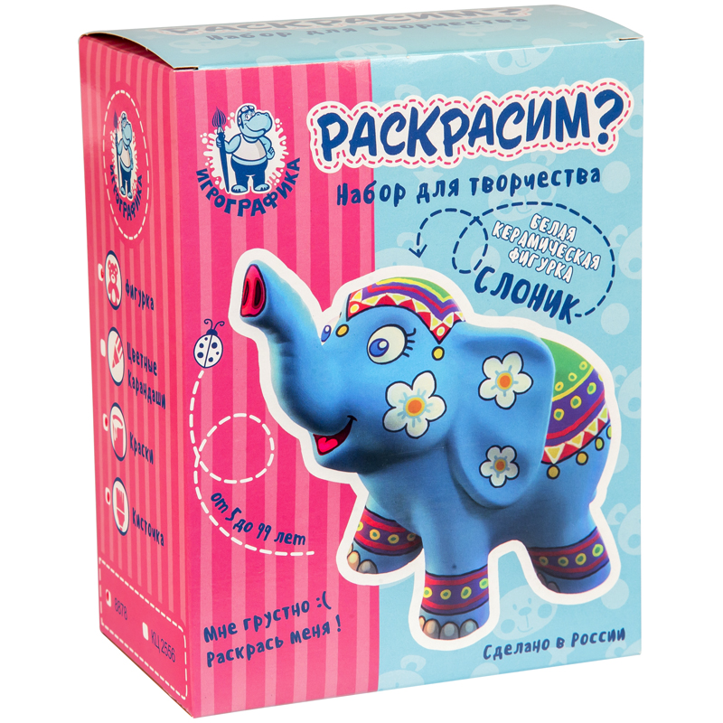 Набор для росписи фигурки из керамики Игрографика с акриловыми красками "Слон"