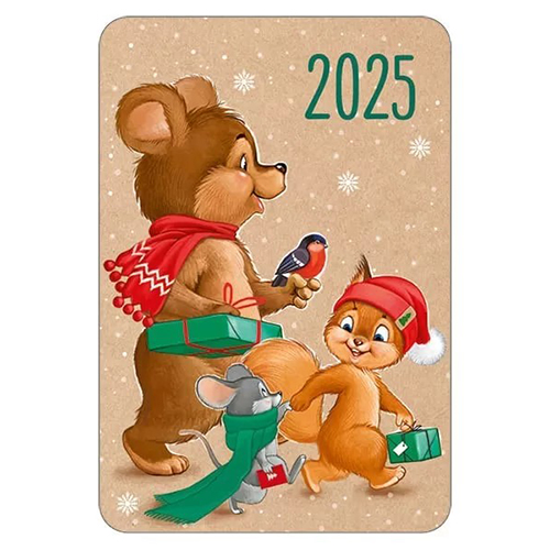 Календарь карманный " Империя поздравлений" 025 на 2025г 91*62мм, Лесные зверюшки с подарками, без отделки, картон