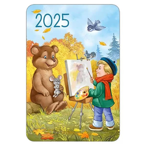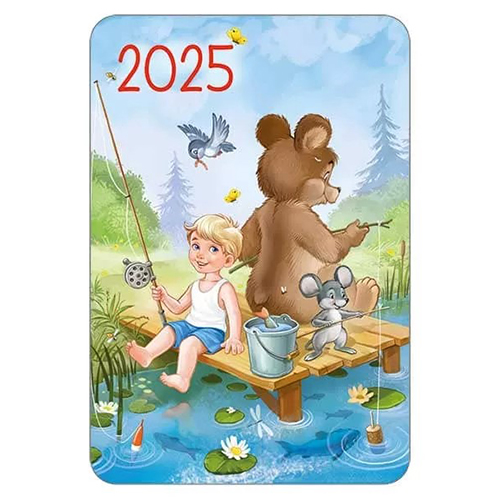 Календарь карманный " Империя поздравлений" 025 на 2025г 91*62мм, Макльчик, мишка и зайчик, без отделки, картон