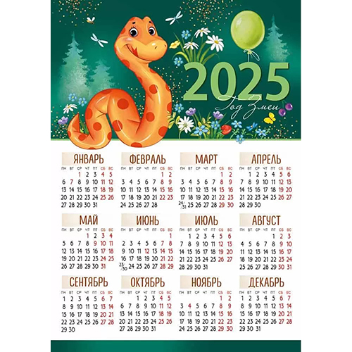 Календарь настенный " Империя поздравлений " 406 на 2025г 206*291мм Символ года- Оранжевая змея в горошек, мелованная бумага, без отделки