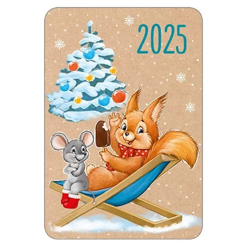 Календарь карманный " Империя поздравлений" 025 на 2025г 91*62мм, Белка и мышонок, без отделки, картон