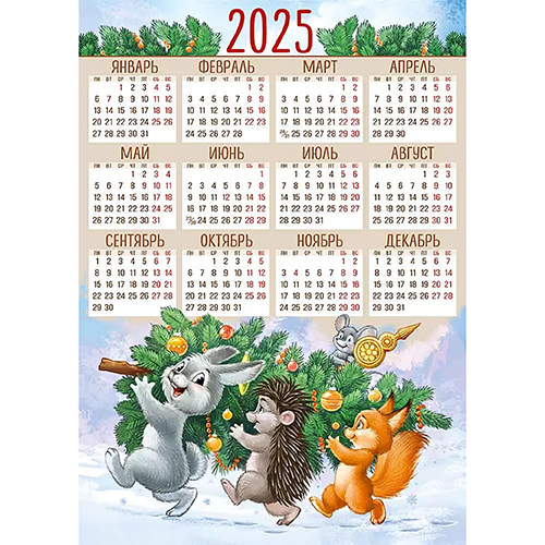 Календарь настенный " Империя поздравлений " 602 на 2025г 297*420мм Зверята с ёлкой, мелованная бумага, без отделки