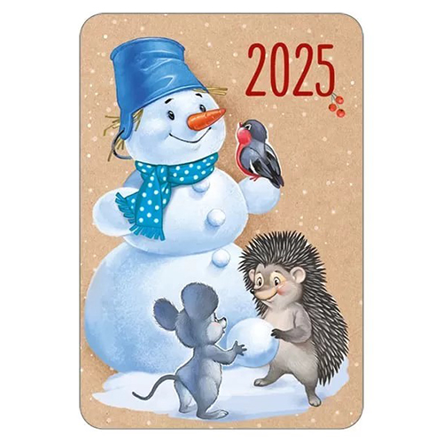 Календарь карманный " Империя поздравлений" 025 на 2025г 91*62мм, Снеговик и зверята, без отделки, картон