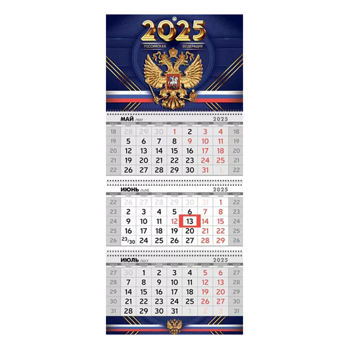Календарь квартальный " Империя поздравлений " 280 на 2025г 685*297мм Герб РФ, настенный, трехблочный, мелованный картон, без отделки, спираль, с курсором