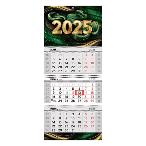 Календарь квартальный " Империя поздравлений " 280 на 2025г 685*297мм Символ года- Зеленая змея, настенный, трехблочный, мелованный картон, без отделки, спираль, с курсором