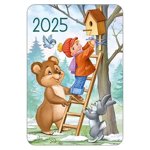 Календарь карманный " Империя поздравлений" 025 на 2025г 91*62мм, Мышонок, ежик и птичка, без отделки, картон
