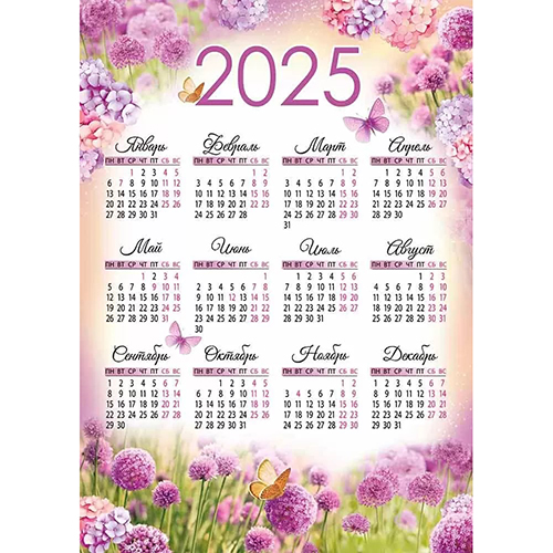 Календарь настенный " Империя поздравлений " 602 на 2025г 297*420мм Бутоны цветов, мелованная бумага, без отделки