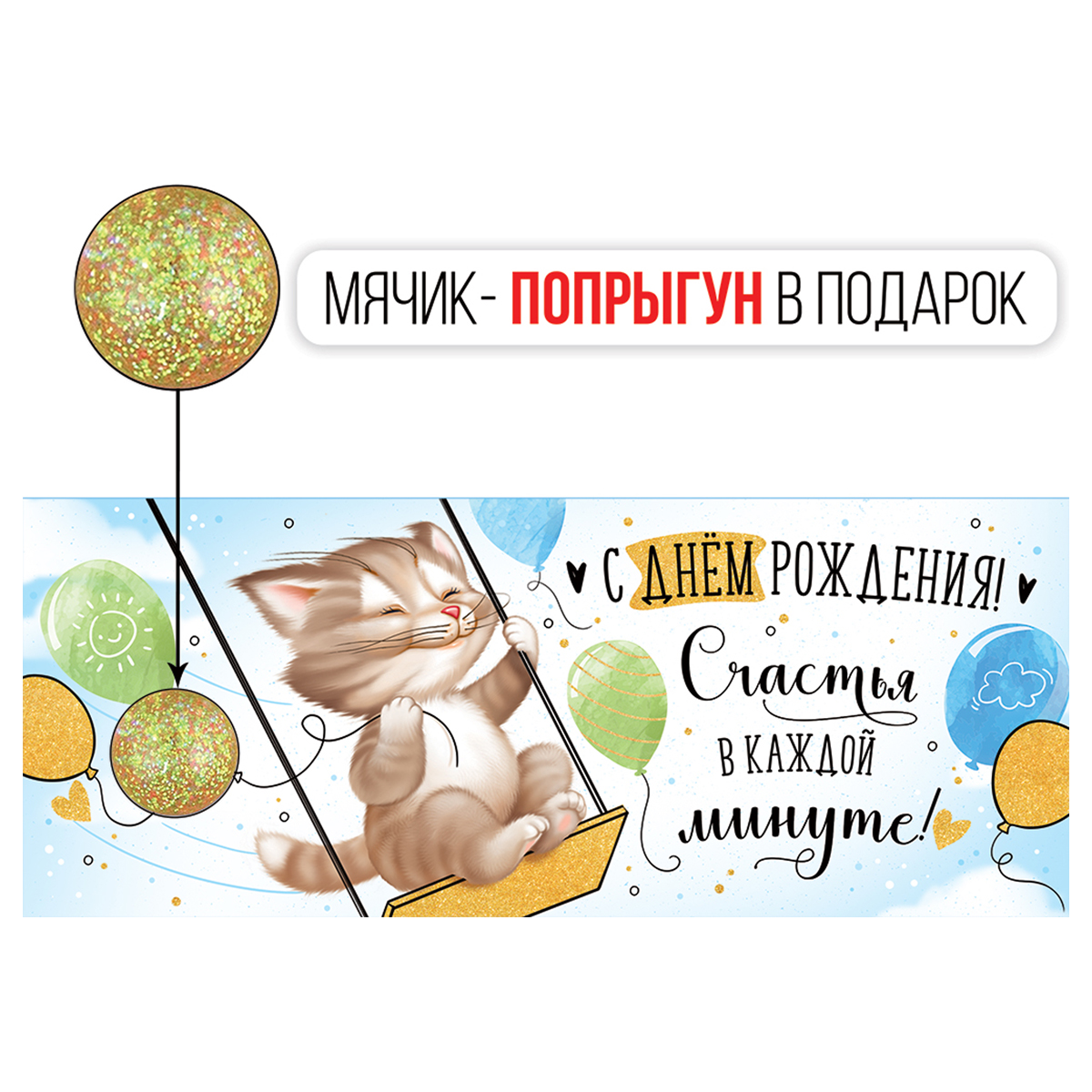 Конверт для денег Империя поздравлений "С Днем рождения!", 82*210мм, лак, 3D мяч
