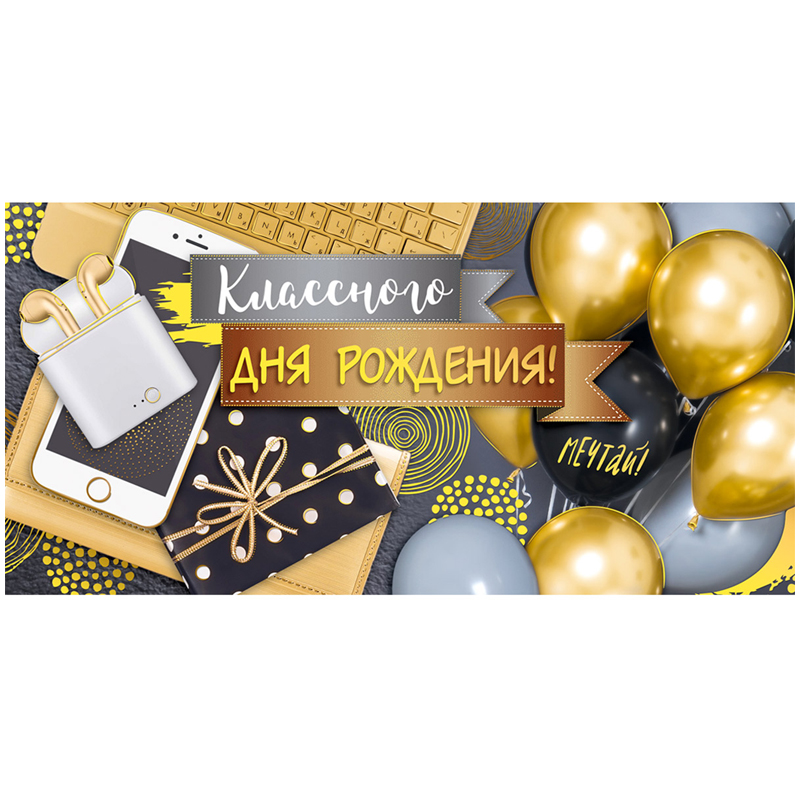 Конверт для денег Империя поздравлений "Классного дня рождения!", 84*168мм, фольга