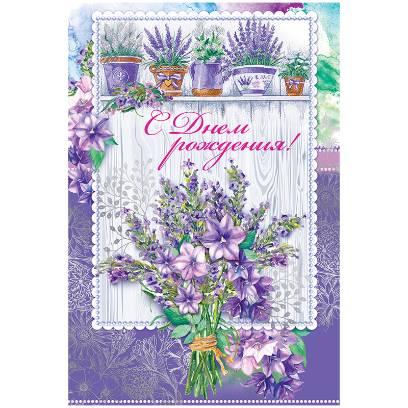 Открытка Империя поздравлений "С Днем Рождения!", 122*182мм, фольга голограф. серебро