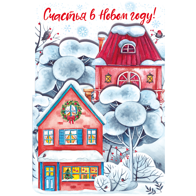 Открытка Империя поздравлений "Счастья в Новом году!", 122*182мм, блестки в лаке, выб. лак