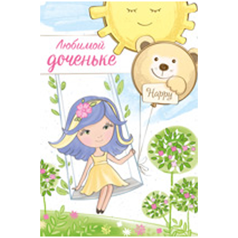 Открытка Империя поздравлений "Любимой доченьке", 98*204мм, выб. лак, блестки