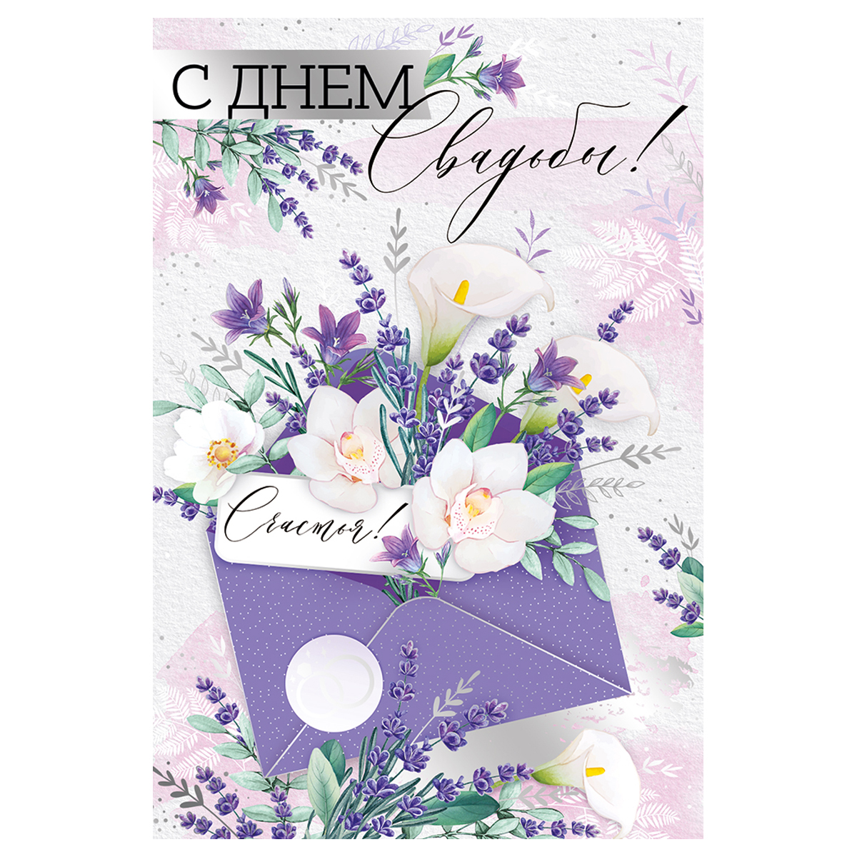 Открытка Империя поздравлений "С Днем Свадьбы", 122*182мм, фольга серебро