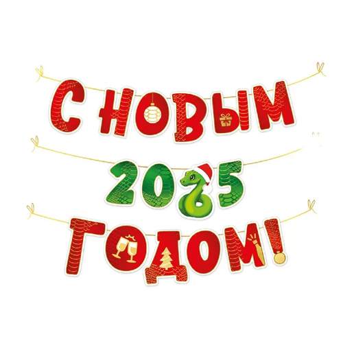 Гирлянда " Империя поздравлений " 945 Новогодняя- С Новым 2025 годом! Символ года- Змея длина 3м 50, на шнуре, без отделки