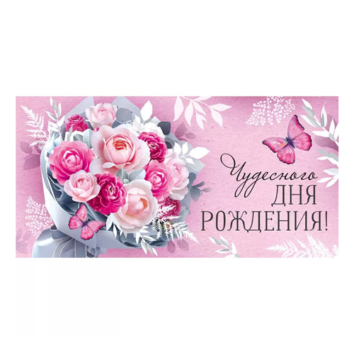 Конверт для денег " Империя поздравлений " 425 Чудесного Дня рождения! Букет цветов, 168*84мм, блестки в лаке, текст