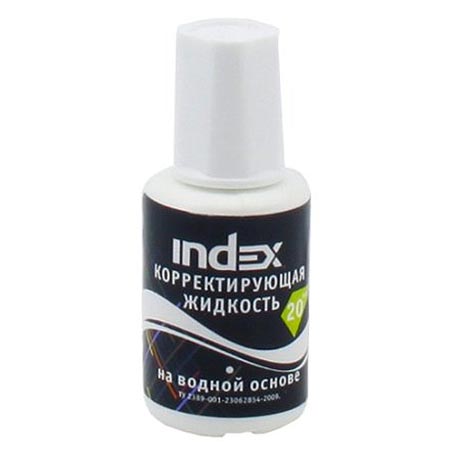Корректирующая жидкость " Index " 20мл с кисточкой, на водной основе, морозоустойчивая, термоусадочная пленка
