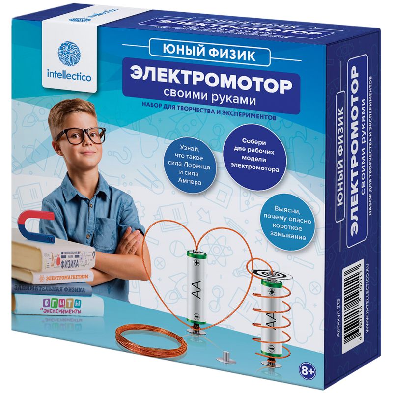 Набор для опытов Intellectico "Юный физик. Электромотор своими руками", картонная коробка