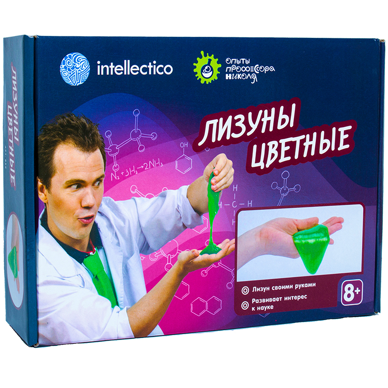 Набор для опытов Intellectico "Опыты профессора Николя. Лизуны цветные", картонная коробка