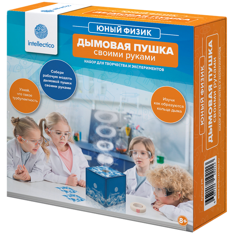Набор для опытов Intellectico "Юный физик. Дымовая пушка своими руками", картонная коробка
