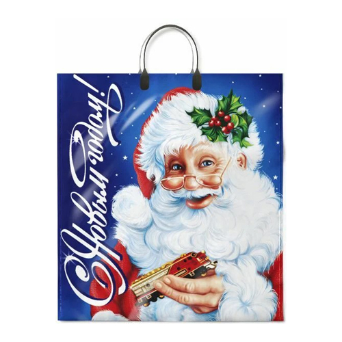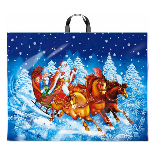 Пакет ПЭ " Интерпак " с петлевой ручкой ПВД, Новогодний- 71*55см 90мкм Зимняя поездка