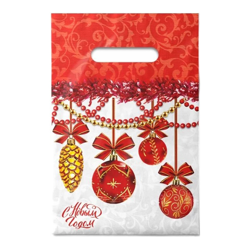 Пакет ПЭ " Интерпак " с вырубной ручкой ПВД, Новогодний- 20*30см 30мкм Бантики