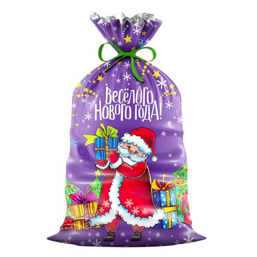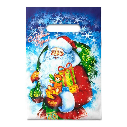 Пакет ПЭ " Интерпак " с петлевой ручкой ПВД, Новогодний- 28*35см 55мкм Мордашка