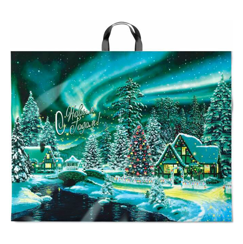 Пакет ПЭ " Интерпак " с петлевой ручкой ПВД, Новогодний- 71*55см 90мкм Дивный лес