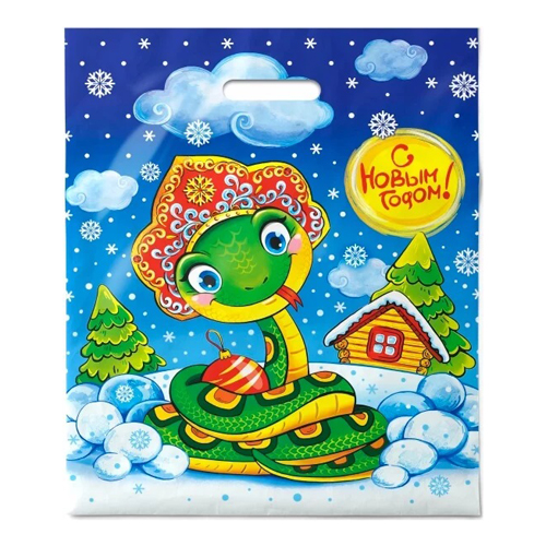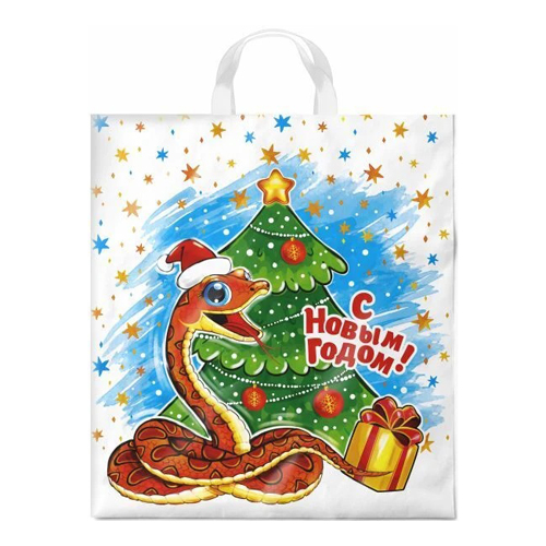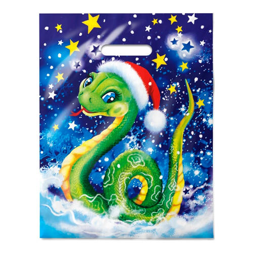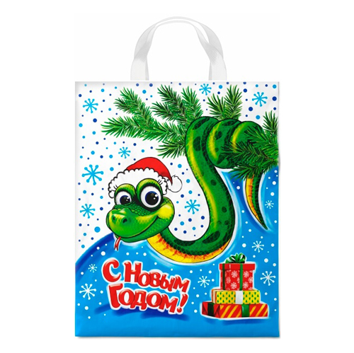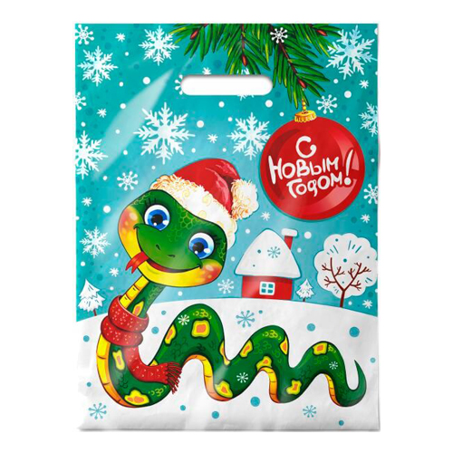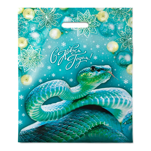 Пакет ПЭ " Интерпак " с вырубной ручкой ПВД, Новогодний- Символ года 40*47см 45мкм Ледяная змея