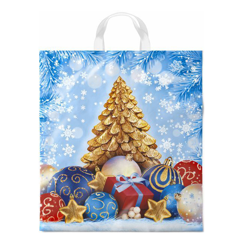 Пакет ПЭ " Интерпак " с петлевой ручкой ПВД, Новогодний- 28*35см 55мкм Под елкой