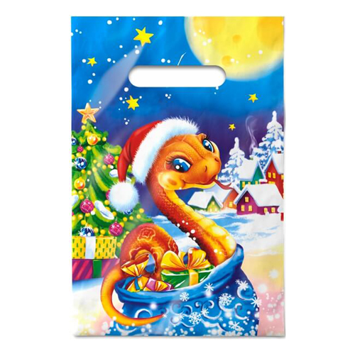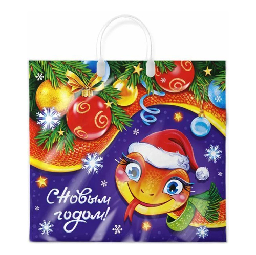Пакет ПЭ " Интерпак " с петлевой ручкой ПНД, Новогодний- Символ года- 38*42см 40мкм Питоша